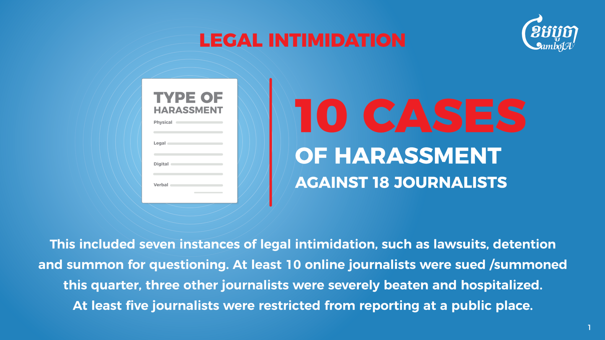 Quarterly Monitoring Report on Journalism Situation in Cambodia (January – March, 2024) This quarter, CamboJA recorded ten cases of harassment against 18 journalists. This included seven instances of legal intimidation, such as…